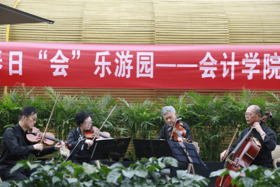 随后是由温江区弦乐组上台演奏,他们以弦乐四重奏的方式分别演奏了:西方经典乐曲莫扎特组曲,日本著名钢琴家久石让《能看见海的街道》,以及江南小调紫竹调,三首曲子风格各异,既有西方音乐严谨与自由的平衡,也有影视作品插曲的轻松愉快,更有中国传统音乐的婉转悠扬。中外音乐的巧妙融合将节目氛围推到高潮。