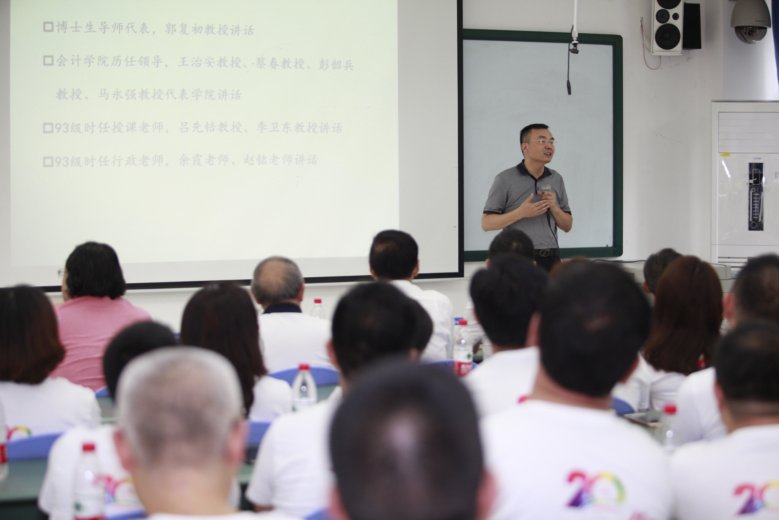 当年《电算化会计与审计》课程的任课老师李卫东老师则用了娓娓道来的方法,讲述了自己与93级同学当年的缘分,告诉同学们正处于人生事业的中点,走好接下来人生非常重要,他希望20年后师生们能再相聚。