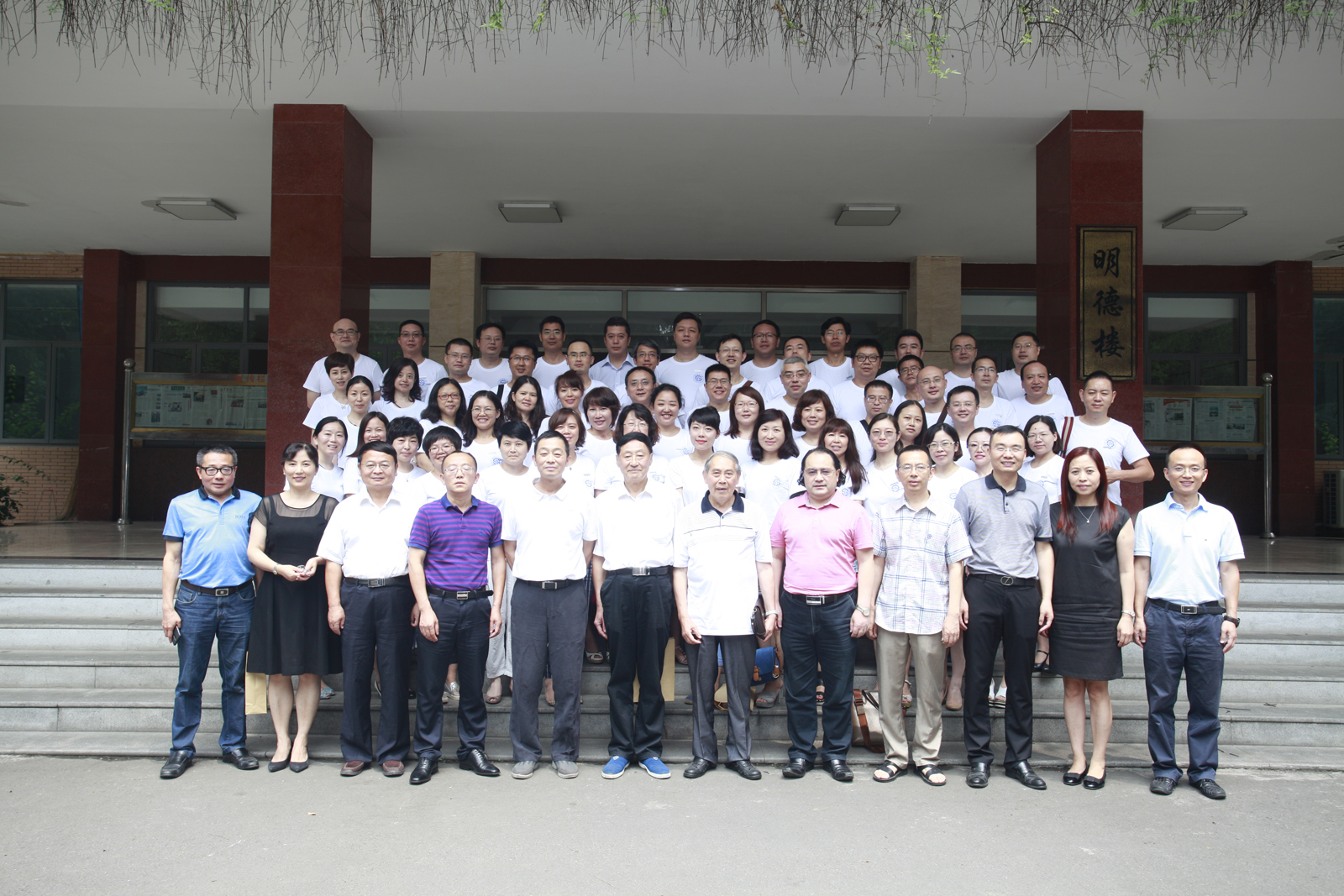 一大早,员工们陆续来到曾经的宿舍楼下,重温当年从宿舍到教学楼去上课的那些清晨时光。从宿舍走到明德楼下,路过光华铁树旁,这是那些青葱岁月里走过了四年的道路,20年后重新再走,仍然是那么的熟悉。光铁树仍是那么葱郁挺拔象征着胜利,明德楼仍是那么静静伫立安然注视着来来往往的学子。
