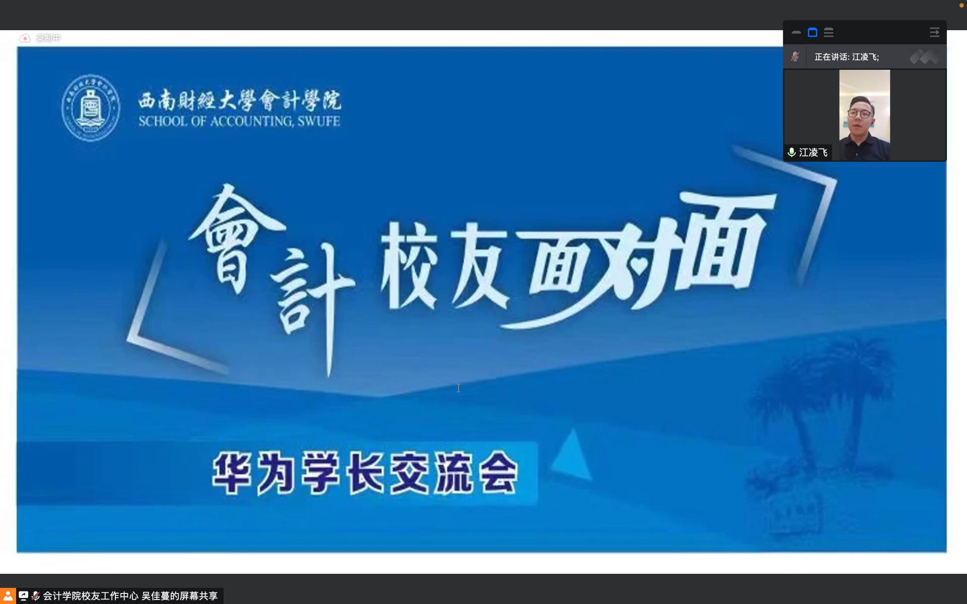 10月22日14点,K1体育员工工作中心举办的第一期“会计员工面对面”活动顺利举行。本次活动嘉宾华为技术有限公司中东地区财务业务部部长,公司2005级员工江凌飞与一百余名同学在线上进行了交流和分享。