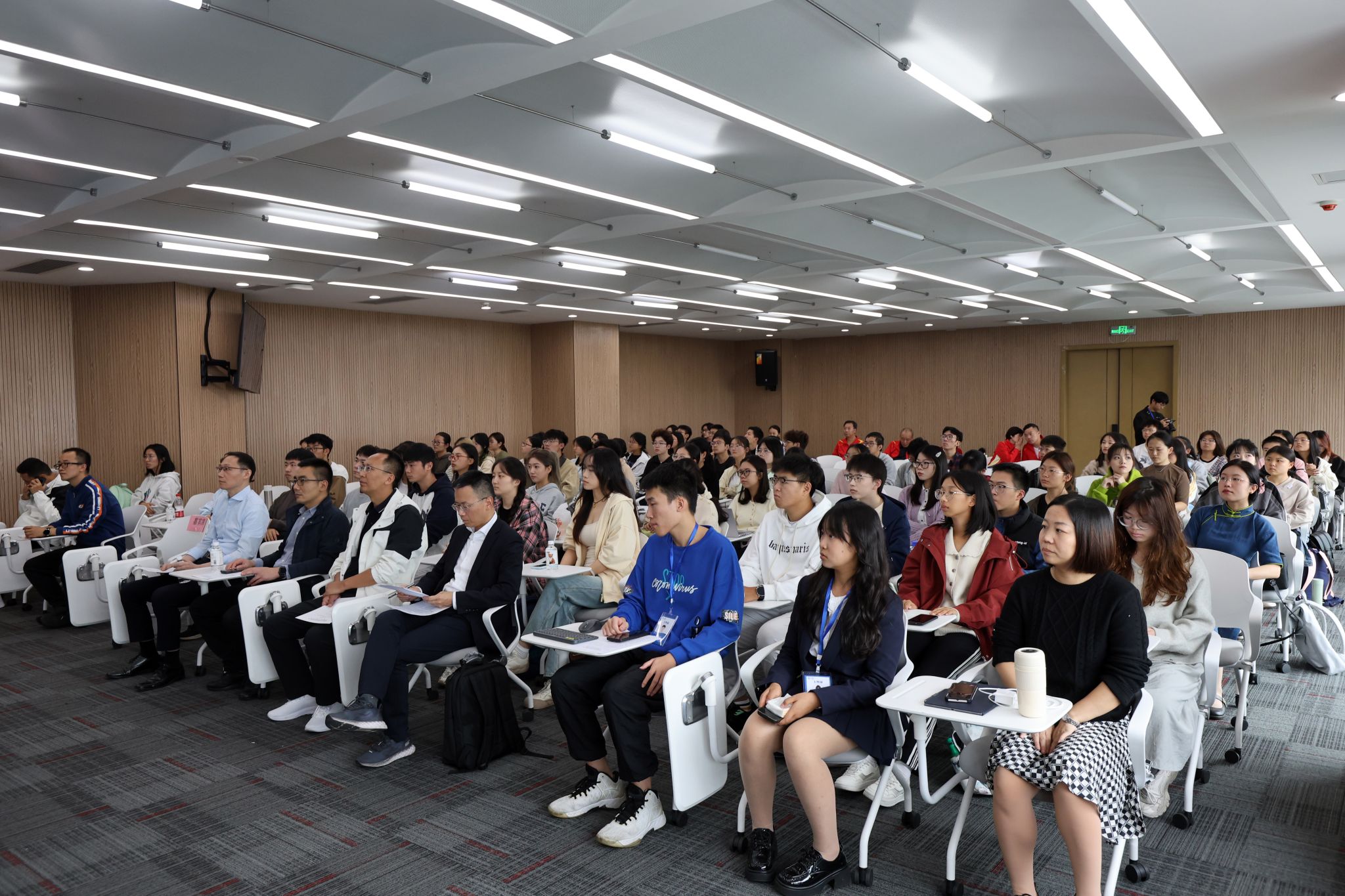 在主题分享环节,周平员工以其丰富的行业经验和深邃的洞察力,围绕“股票投资”问题展开深入讨论,引导听众思考“叙事”的力量,并分享了“不能仅通过观察过去预测未来”的投资哲学。他以幽默风趣、深入浅出的实例和语言为听众们带来了专业深邃的思想盛宴。面对同学们热情高涨的提问互动,周平员工结合自己多年的金融领域行业经验耐心细致地回答了大家的困惑和疑问,并鼓励同学们积极思考、大胆探索、永葆热爱。周平员工现场的互动交流,展现了自身卓越的专业素养和敏锐的市场洞察力,进一步激发了同学们对未来投资领域的无限热情和探索欲望。