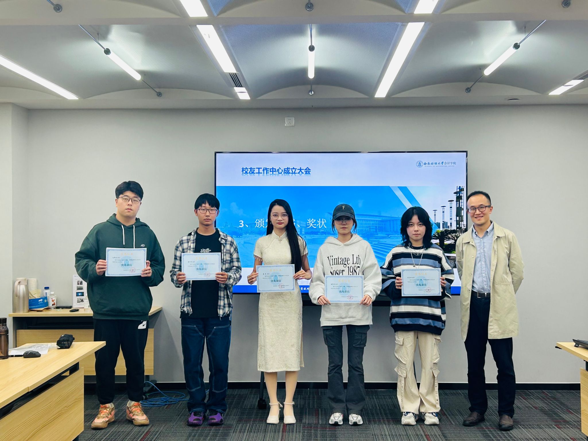 会上,指导老师及主任团成员向新成员颁发聘书及工作证,并为过去一年中工作勤勉、表现优异的“优秀部员”及“优秀部长”颁发荣誉证书。