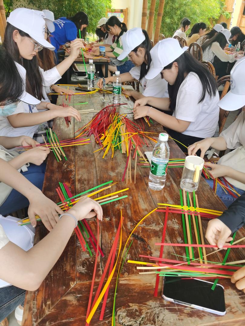 活动中,同学们观看了非遗竹编宣传片,聆听讲解人员讲解竹编艺术和传承,更好的理解了竹编艺术和竹编传承的重要意义。在竹编师傅们的带领下,同学们开始动手编制制竹编工艺品,亲身体验竹编的魅力所在,通过自己的双手将一根根竹条穿插,制作出各式各样有着丰富内涵的竹编工艺品。最后,同学们拿着自己亲制的竹编工艺品合影留念。