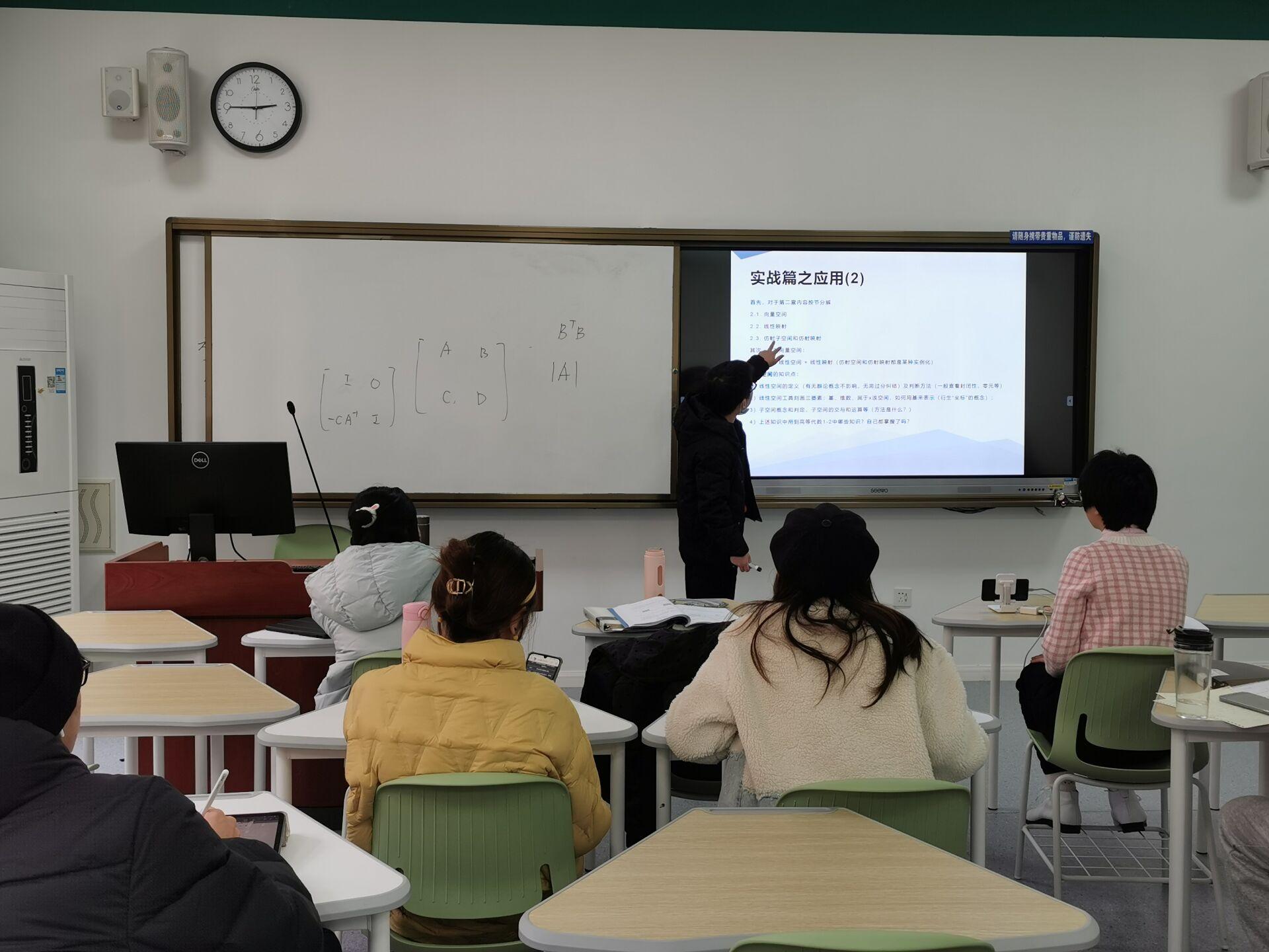 此次活动主要以老师分享的方式开展,顾老师从学习方法、知识框架梳理和重难点讲解等角度入手为同学们进行了深入地阐述。顾老师在讲解方法的同时,举出更加生动形象的事例来帮助同学们进行内容理解;此外,顾老师还重点讲述了一些同学们在日常学习中容易出现的错误和混淆点,详细分析错误原因以及改正方法。活动的最后,同学们积极地提出自己的问题和在学习过程中遇到的困扰,顾老师用深入浅出的语言为同学们答疑解惑,同学们对往后的学习更加明确,对机器学习数学基础这门课也更有信心。