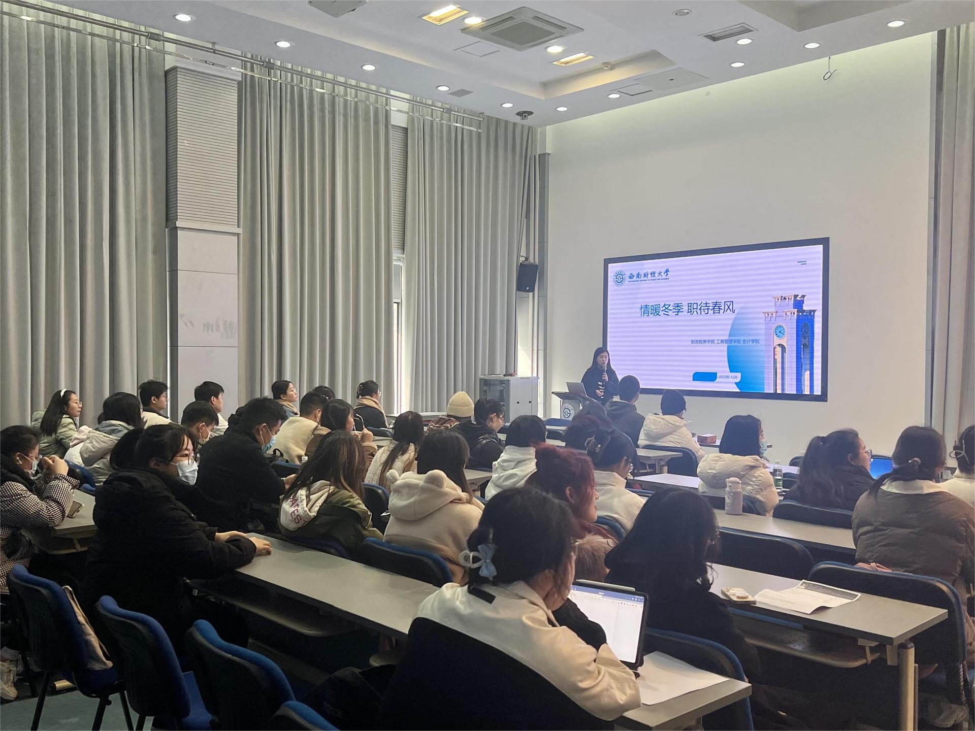 12月27日下午,K1体育联合财政税务公司、工商 管理公司、员工职业规划与就业指导中心共同举办“情暖冬季 职待春⻛”求职指导活动。会计公司党委副书记杨⻓虹、工商公司党委副书记王昱夫、财税公司党委副书记王隆庆及就业中心就业管理科科⻓余婧参加本次活动。同时,来自各公司和就业中心的10余位资深指导老师亲临现场,一起为同学们解答就业疑惑,提供简历修改、面试技巧、海外留学等多方面的求职指导。