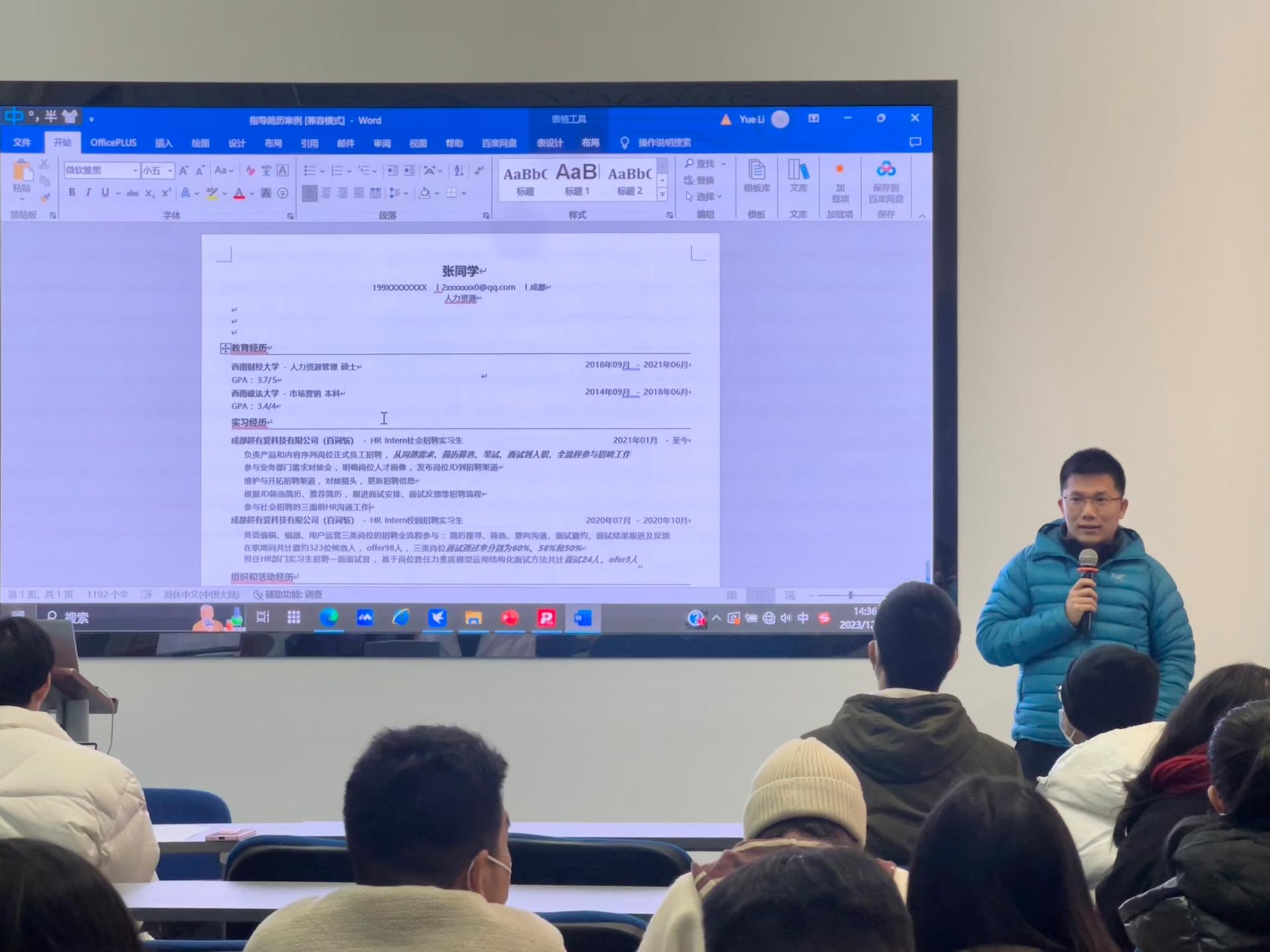 活动伊始,余婧为同学们解读了当前的就业形势及最新的就业政策,并对校院两级系列就业指导活动进行了介绍。王隆庆深入浅出地讲解了简历撰写的重点和误区,并对同学们的问题答疑解惑。王昱夫结合同学情况解答实际困惑,一对一给出个性化的生涯发展建议。同学们在老师们的细致讲解中受益匪浅。在K1体育承办的无领导小组讨论面试辅导环节,杨长虹、陈秋达两位老师全程辅导。活动最大程度还原招聘真实环节,点评深挖面试题目并给予中肯评价,细致讲解面试注意事项。细致讲解面试基本流程和注意事项,点评深挖面试题目并给予中肯评价,让同学们通过面试体验、复盘反思、专家点评,进一步提升面试应对技巧和求职技能。