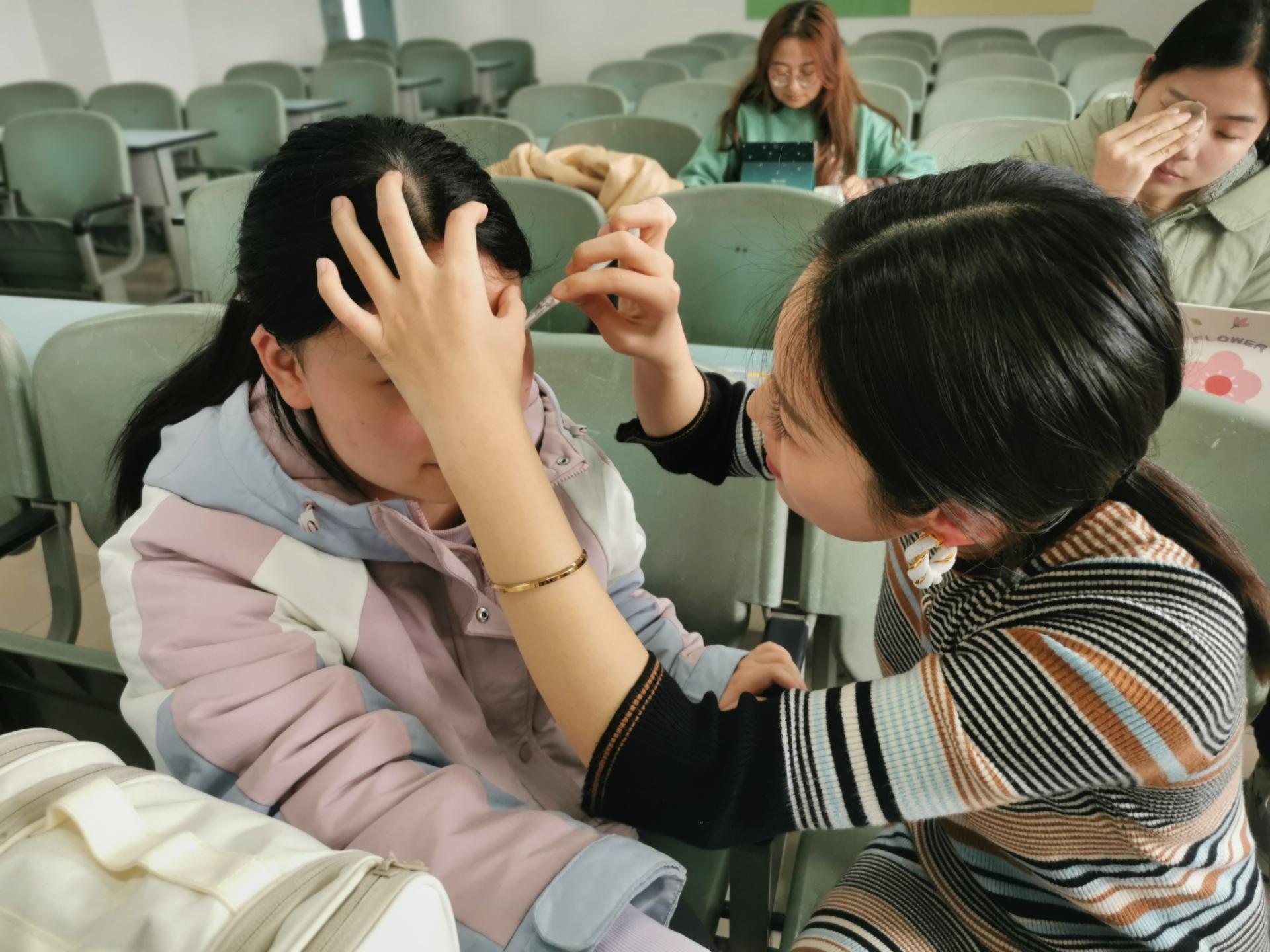 活动开始,赖美丞对面试形象进行了基本介绍。随后,赖美丞在现场随机抽取了一名同学亲自上妆,大家进行观摩学习。同学们在观摩大致流程后,开始自己上手操作,练习过程中,赖美丞针对同学们提出的问题一一做出解答。在本次活动中,同学们通过练习学到了如何画出合适自己的面试妆容。