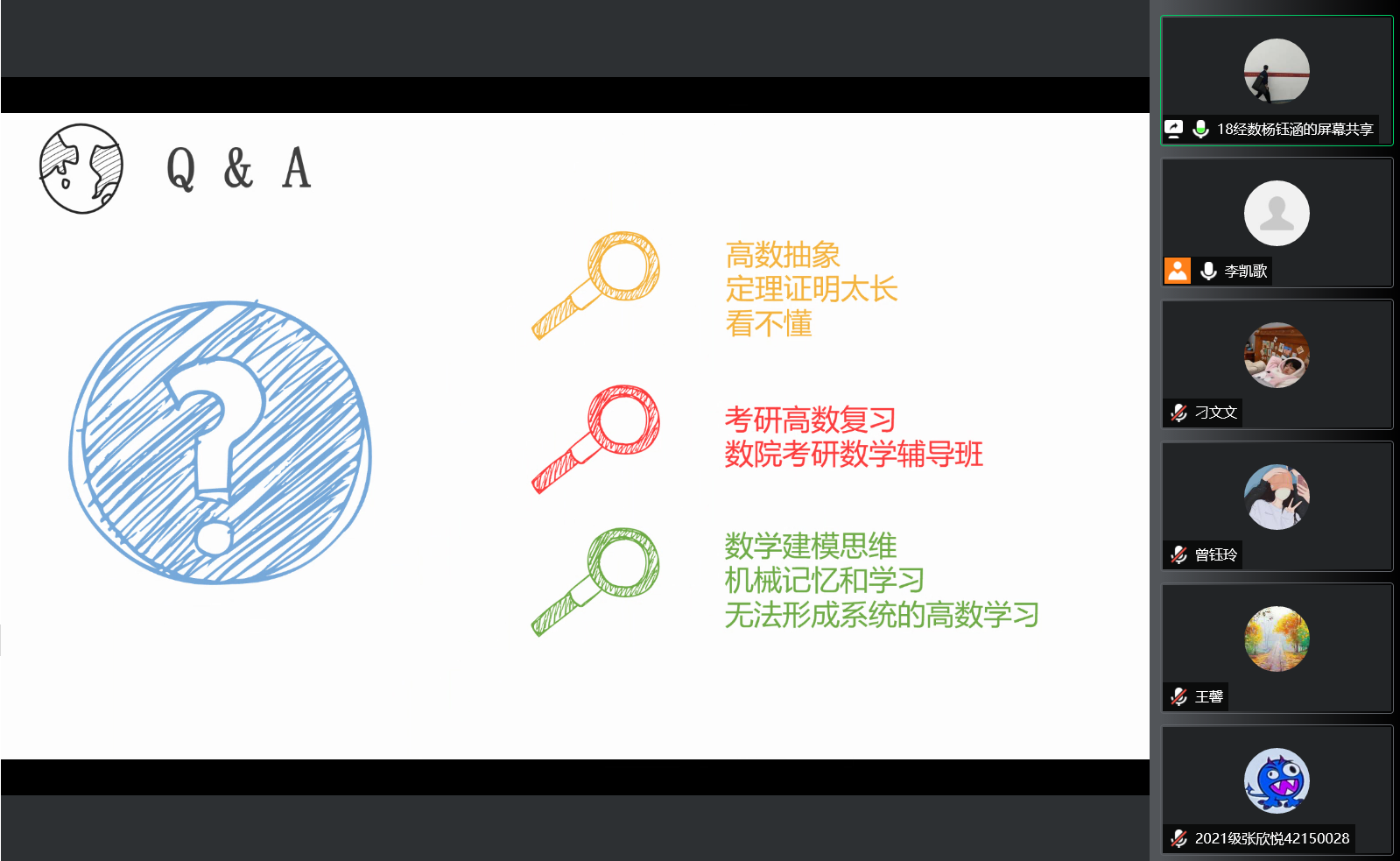 此次分享中,杨钰涵对高数学习、考研数学准备和竞赛的精准讲解获得了同学们的一致好评,通过此次活动,同学们学习高等数学的经验和积极性得到了提升。希望同学们学以致用,未来对高数学习更有信心!