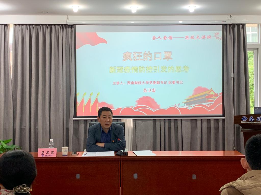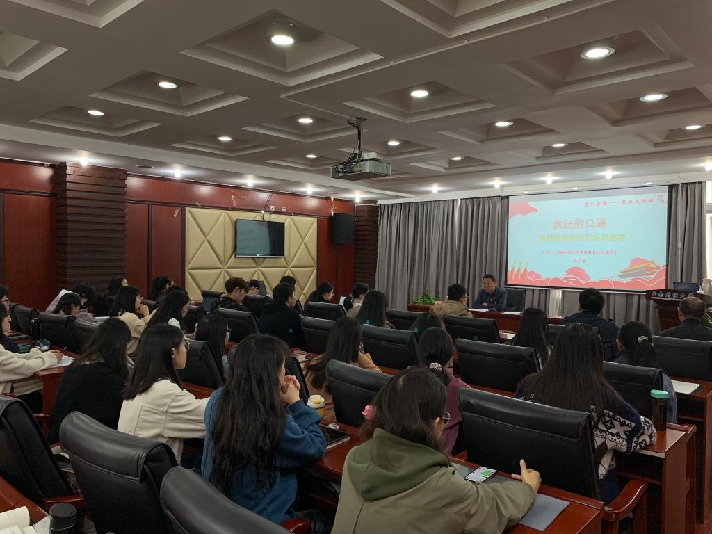 11月10日15:00,由K1体育员工成长与发展中心举办的会人会语之思政大讲堂第二期“疯狂”的口罩——新冠疫情防控引发的思考,在通博楼D201顺利举行。K1体育官方网站党委副书记,纪委书记范卫宏担任本次思政大讲的主讲人,公司员工成长与发展中心、会计团学、党建指导中心以及员工工作中心共五十员工干部参加本次思政大讲坛K1体育分党委副书记、纪委书记吴春力主持