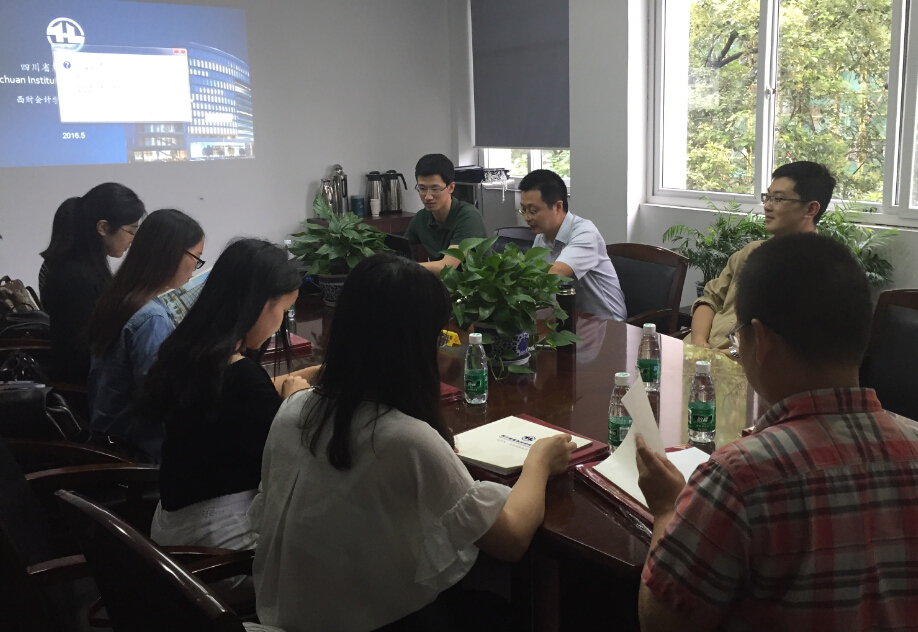 在会议室里,办公室主任郭灵先生及财务部主任吴菲先生对同学们的到来表示欢迎。一段宣传视频,向同学们介绍了四川省建筑科学研究院的概貌。从名字出发,郭灵先生介绍了建科院作为立足于建筑行业,囊括科研、检测鉴定技术服务、勘察设计、专业技术施工、工程监理与项目管理多门类的综合性研究机构的基本概况。始建于1954年,历经六十余年的改革发展,建科院曾为环球中心、宽窄巷子、双流机场航站楼等大型项目提供鉴定、检测等技术服务,组建了专家学者加技术团队的专业队伍,为四川建筑行业作出了巨大贡献。郭先生也向同学们介绍了建科院“员富院强”的发展愿景,展示了“一般管理人员——主办——主管——部分负责人——高层管理”的管理人员发展路径。
