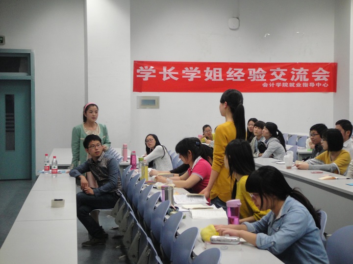 在名企专场,来自会双专业的许金城学长以一张求职时间表拉开了本场交流会的序幕。他就从业的基本素质如语言表达、观察能力、专业能力、执行力等进行条分缕析,并对国企、民企和外企做出了解读与比较。他鼓励同学们多思考、多实践,保持一种“因上努力,果上随缘”的心态从容面对求职。来自2010级会双专业的张亚琼学姐为我们带来了求职于华为的所感所想。她重点为大家介绍了网申技巧、笔试题型和面试准备,并就无领导小组讨论进行了详细的分角色解读。她坦言,按部就班做好准备,就一定会有所收获。