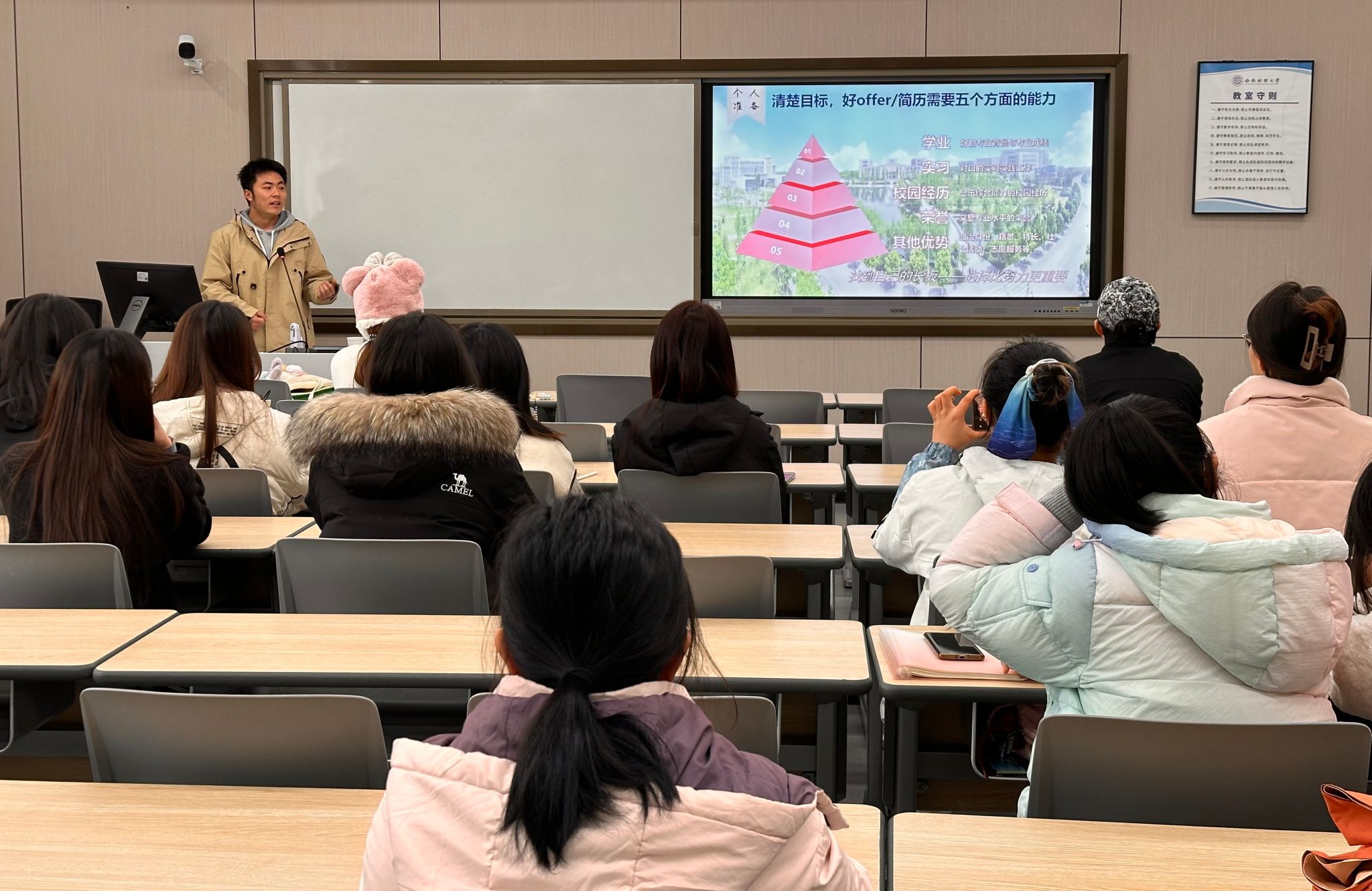 本次分享会为同学们提供了一个与优秀学长面对面交流的机会,帮助大家在职业规划和求职准备方面获得了宝贵的经验。相信通过这次活动,同学们能够更好地规划自己的职业道路,为未来的求职之路打下坚实的基础。(文/王一婷 图/王一婷 初审/陈秋达 终审/张太富)