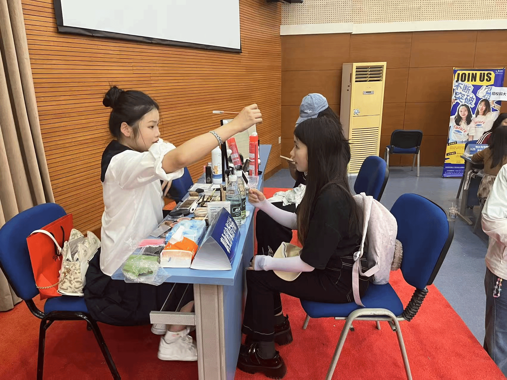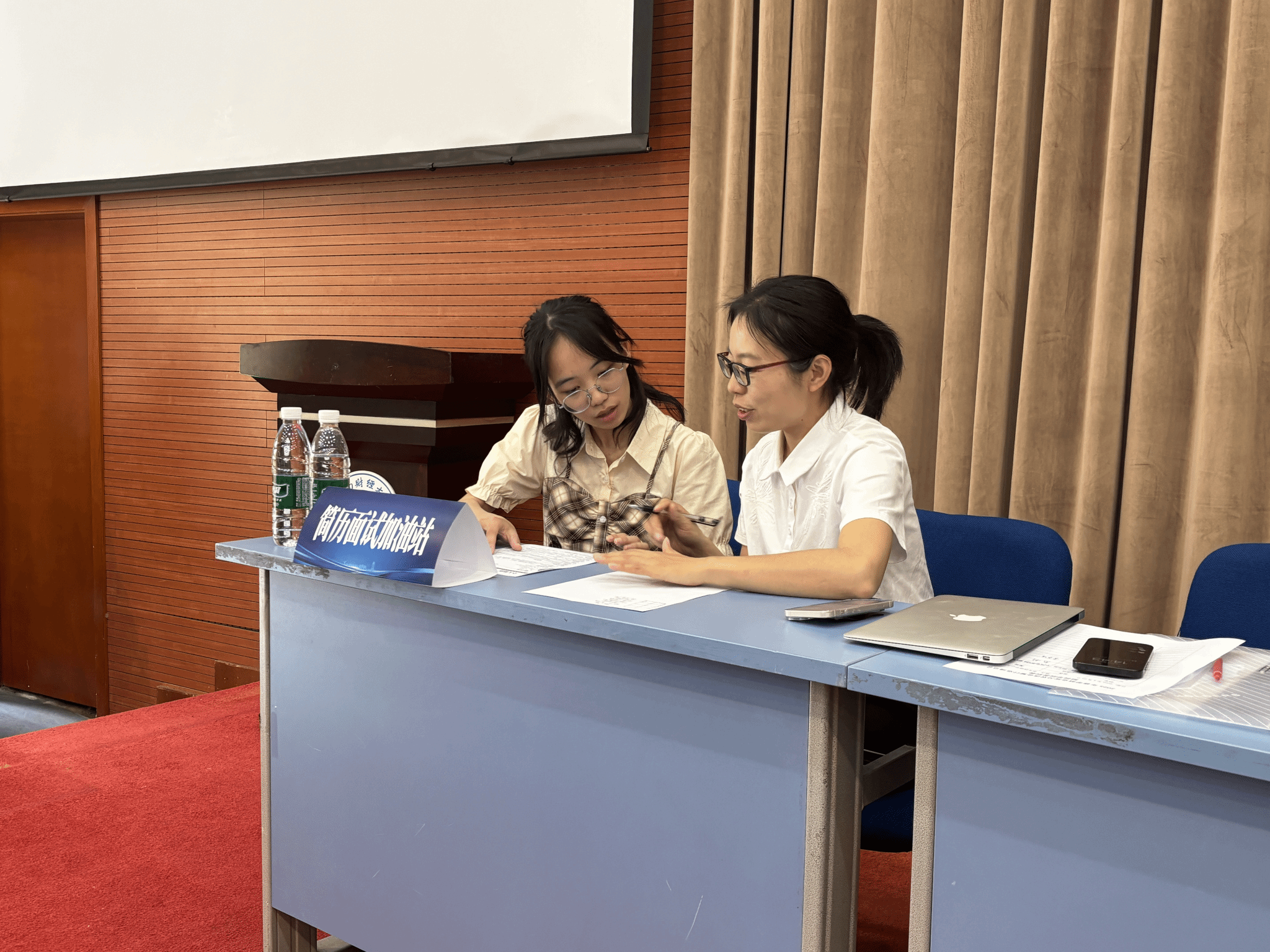 双选会现场还特别开设了“简历加油站”和“化妆点”服务,不仅有资深教师一对一指导员工优化简历,帮助公司学子打磨求职“敲门砖”,更有专业化妆师为同学们提供清爽得体的妆容建议,助力同学们以最佳的“第一印象”迎接求职面试。