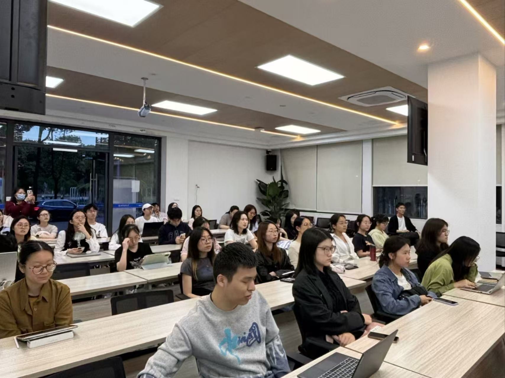 在互动交流环节,现场气氛热烈,同学们围绕职业发展踊跃提问。针对"华为人才选拔标准"、"实习经历的价值体现"、"专业证书的含金量"等热点问题,杨睿哲结合自身经验给出了专业建议:一是要构建系统化的专业知识体系,在面试中展现深度思考能力;二是要重视实践积累,通过实习提升职业素养;三是要理性看待证书,CPA等资质是能力佐证而非必备条件。他还特别分享了获取优质就业信息的渠道,并勉励学弟学妹保持开放心态,在职场实践中实现价值成长。
