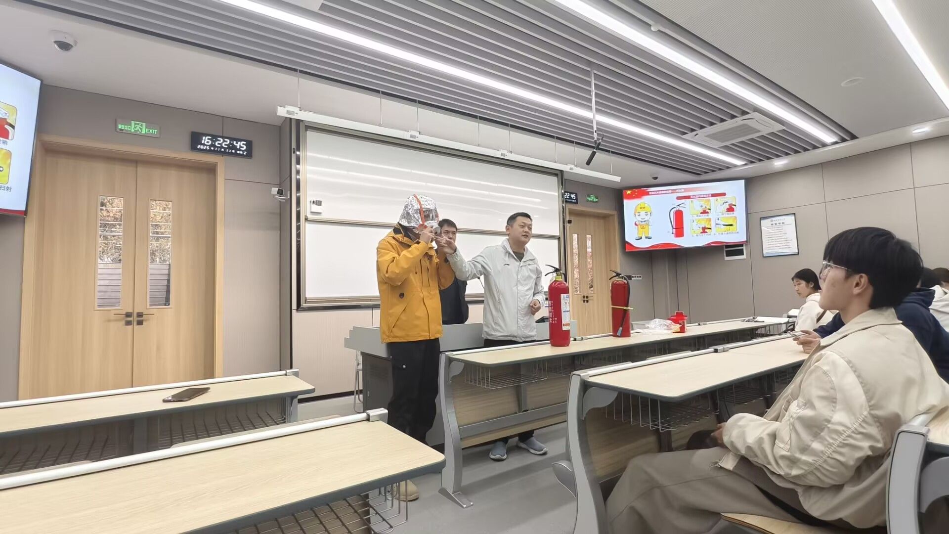 消防教育环节,刘伯禹以校内松园宿舍火灾案例为警示,生动呈现了违规用电、明火使用不当等常见隐患的严重后果。在实操教学中,老师现场演示了干粉灭火器、二氧化碳灭火器及防毒面罩的正确使用方法,并邀请员工代表动手体验,强化应急技能。围绕火场逃生,刘伯禹明确了“小火快跑,浓烟躲避”的基本原则,详细讲解了固守待援、湿巾捂鼻等关键技巧,切实提升员工自救能力。