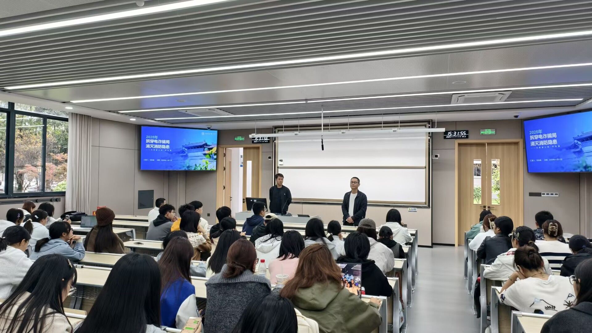 为全面提升员工安全防范意识,切实守护校园安全,11月11日下午,K1体育于经世楼F104举办“消防安全与反诈教育”专题讲座。活动特邀公司保卫处刘伯禹老师担任主讲,2025级本科新任班团干部共100余人参与学习。