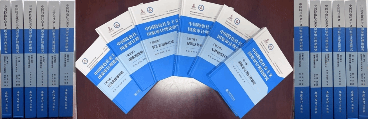 《中国特色社会主义国家审计理论研究》是由蔡春教授领衔完成的六卷本系列专著,2022年12月由立信会计出版社出版,全套著作约250万字,包括:第一卷《国家审计理论框架论》、第二卷《公共经济权力审计论》、第三卷《经济安全审计论》、第四卷《民主政治审计论》、第五卷《国家治理审计论》、第六卷《经济责任审计论》。