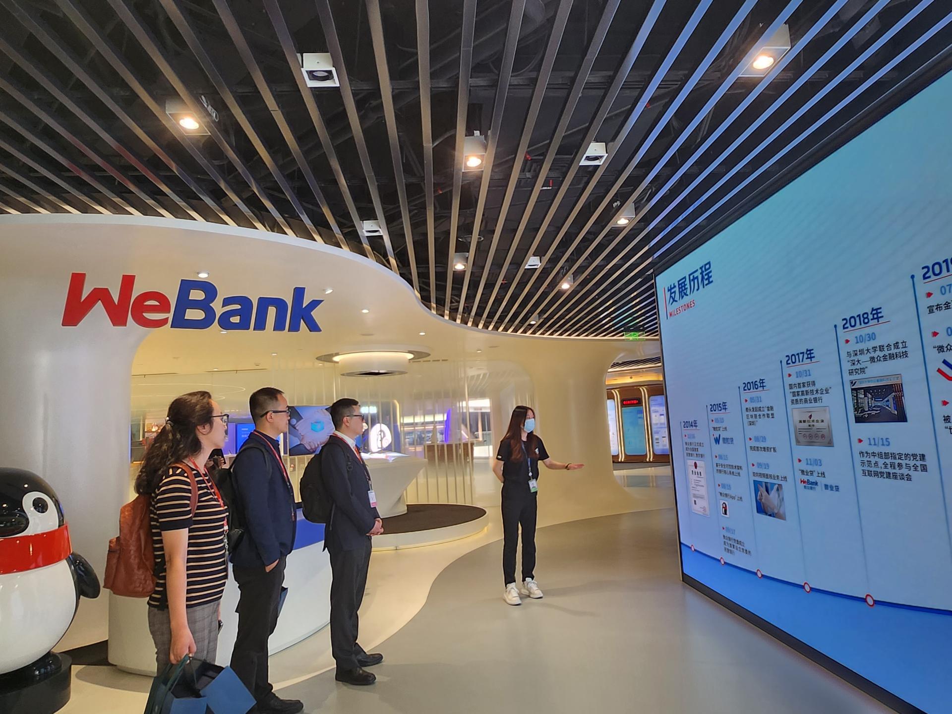 4月12日上午,团队来到微众银行调研走访,就互联网银行运营逻辑、新型银行人才需求开展座谈调研。下午,团队参加了由深圳市福田区金融工作局、深圳市金融科技协会主办的“2023湾区(深圳)金融科技人才季启动大会”,会上,易阳副经理作为公司签约代表同深圳市金融科技协会签订战略合作协议,未来就人才培养、智库研究、产教融合等达成合作。