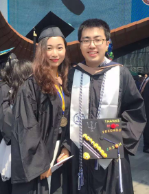 公司的各种社团非常多,分类的话可以分为兄弟会(fraternity)和非兄弟会类,或者就业导向和兴趣导向,等等等等。像我之前提到的Wall Street Club就是就业导向的非兄弟会社团。兄弟会有严格的入会要求,进入之后兄弟姐妹之间联系非常紧密,非常有爱,很多2+2项目的同学选择了参加就业导向的兄弟会Beta Alpha Psi。毕业典礼的时候兄弟会的大家都有各种不同颜色的绶带,非常特别非常好看啊,没有参加兄弟会的小ko同学肠子都要悔青了。。。还好我有参加公司的一个荣誉员工项目,毕业的时候发了一个奖牌,总算不是一身素净的黑袍闯天下。看看,看看可怜的我和五彩缤纷的Jason同学!话说回来,这个荣誉项目要求多修四门课,算是多一个商科辅修(business analysis minor),项目成员在公司教务系统里有优先选课权(first day registration),也有一些像公司估值,国际政策之类很有意思的课,算是我延迟一年毕业的意外收获。