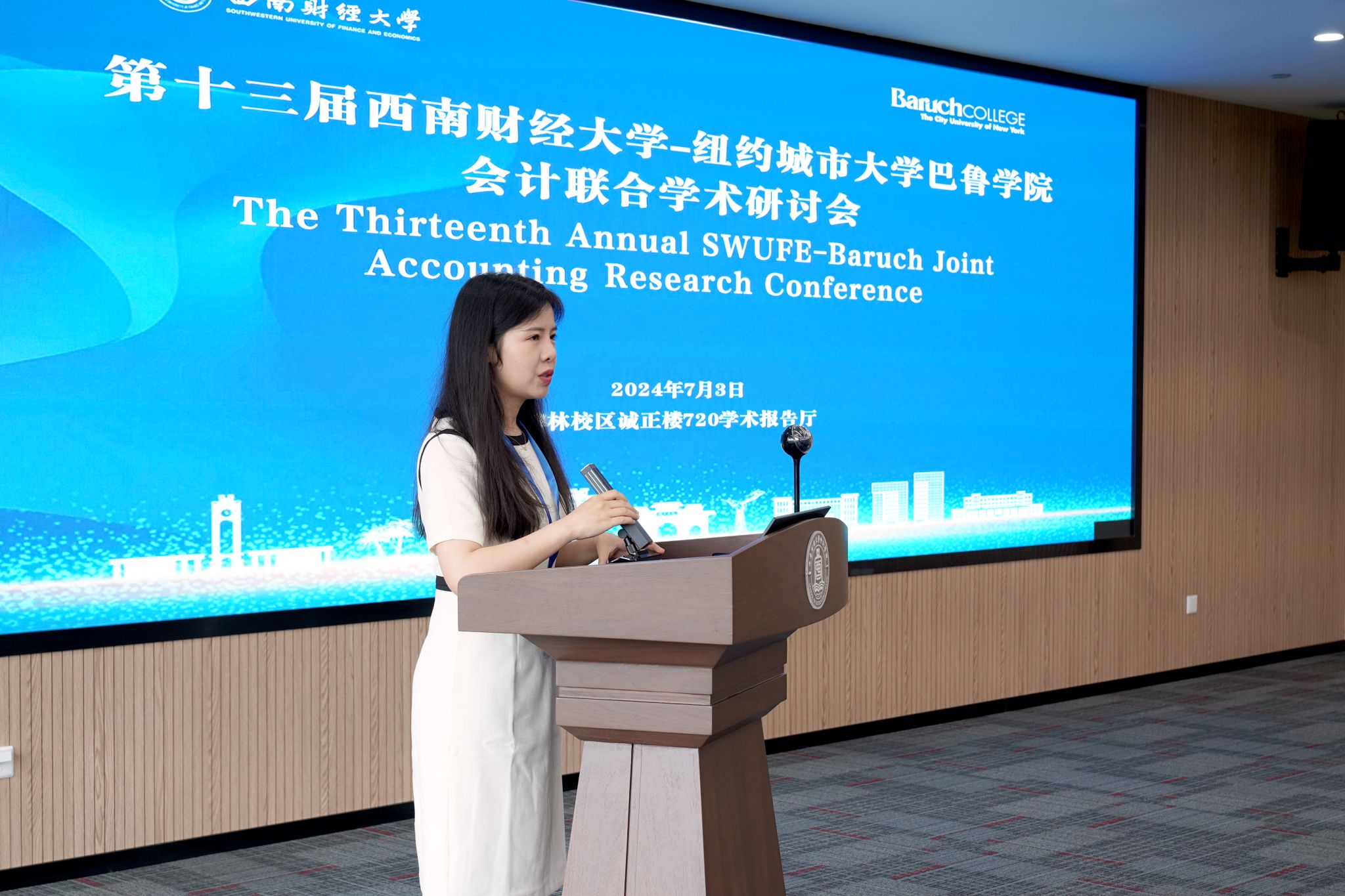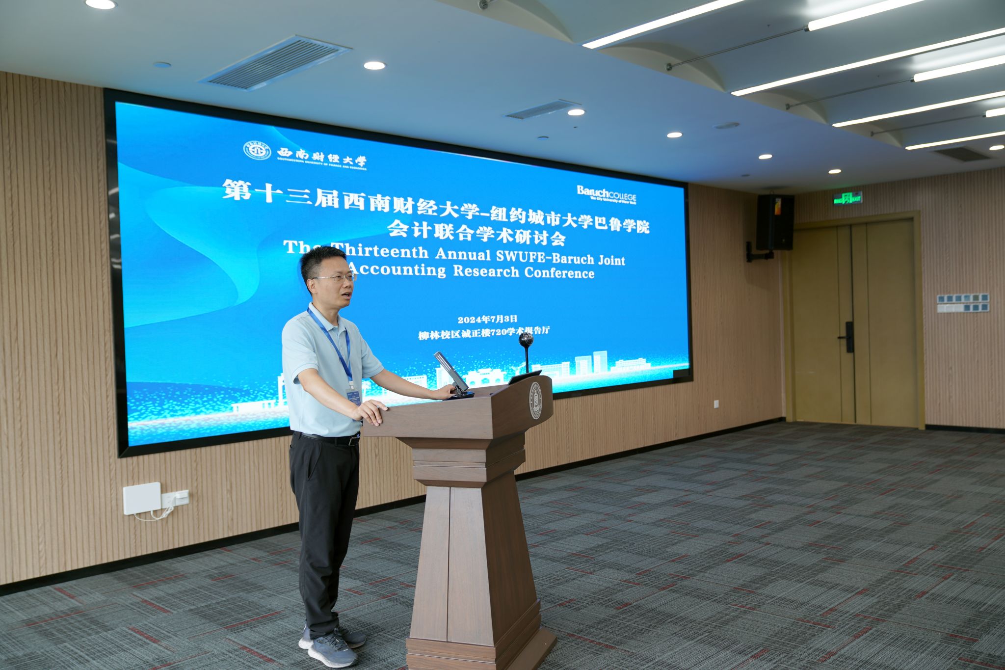 7月3日,第十三届K1体育官方网站-纽约城市大学巴鲁公司会计联合学术研讨会在K1体育官方网站柳林校区诚正楼720学术报告厅成功举办。这是自公司K1体育与纽约城市大学巴鲁公司杰克林商公司于2009年联合成立“SWUFE-CUNY会计与管理联合研究所”以来,双方举行的第十三次联合学术研讨年会。本次研讨会采用线上线下结合的方式举行,以“数智经济下的财务与会计”为主题,旨在为国内外会计、审计、金融学领域的专家学者提供一个交流和展示前沿学术成果的平台,深化中美学者学术交流,推动会计理论与实务的发展,并提高我国会计研究的国际影响力。本次研讨会自2009年以来首次对国内外高校开放,吸引了来自美国罗切斯特大学、香港中文大学(深圳)、中央财经大学、北京理工大学等众多海内外知名高校的专家学者参会。