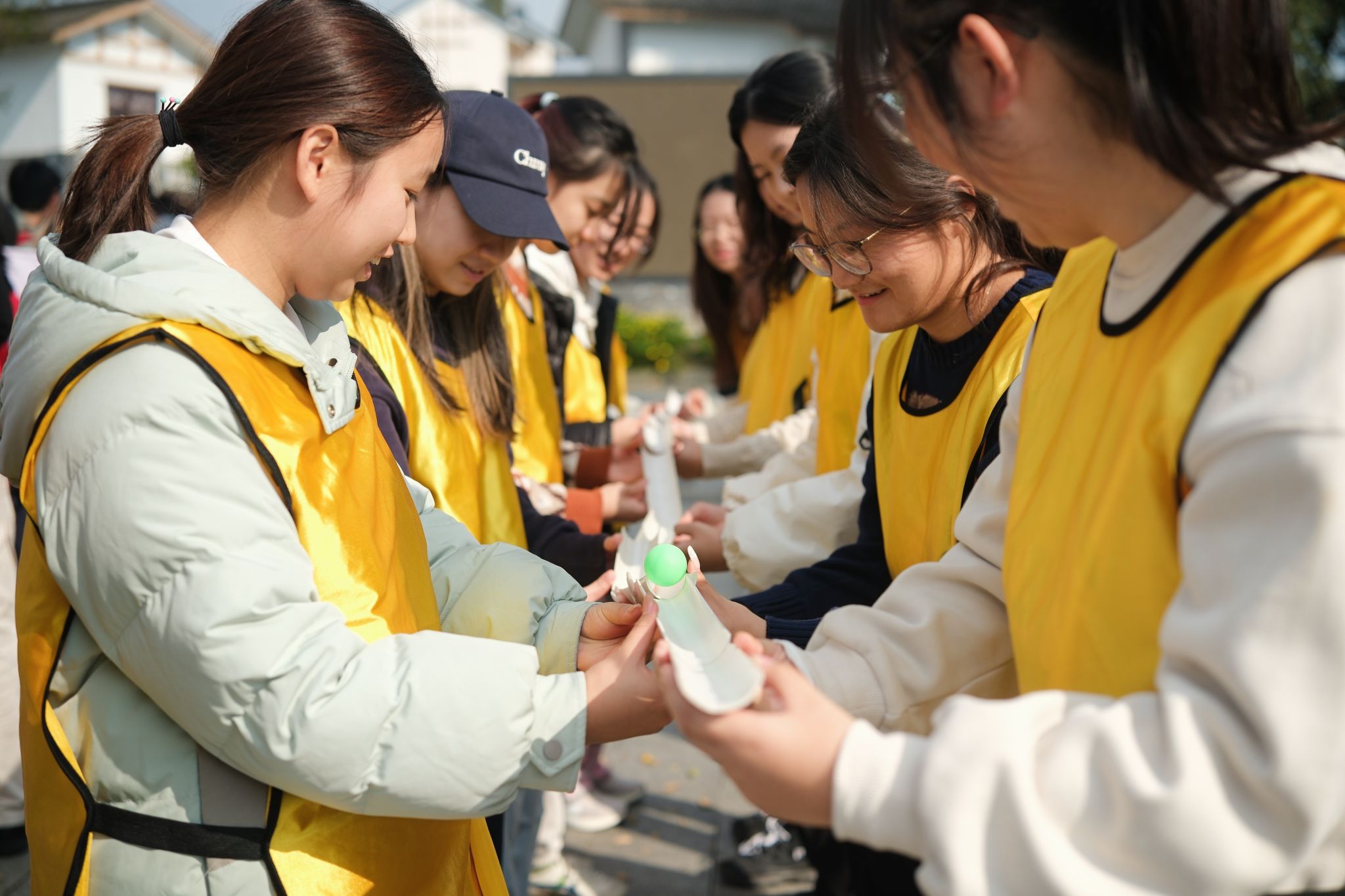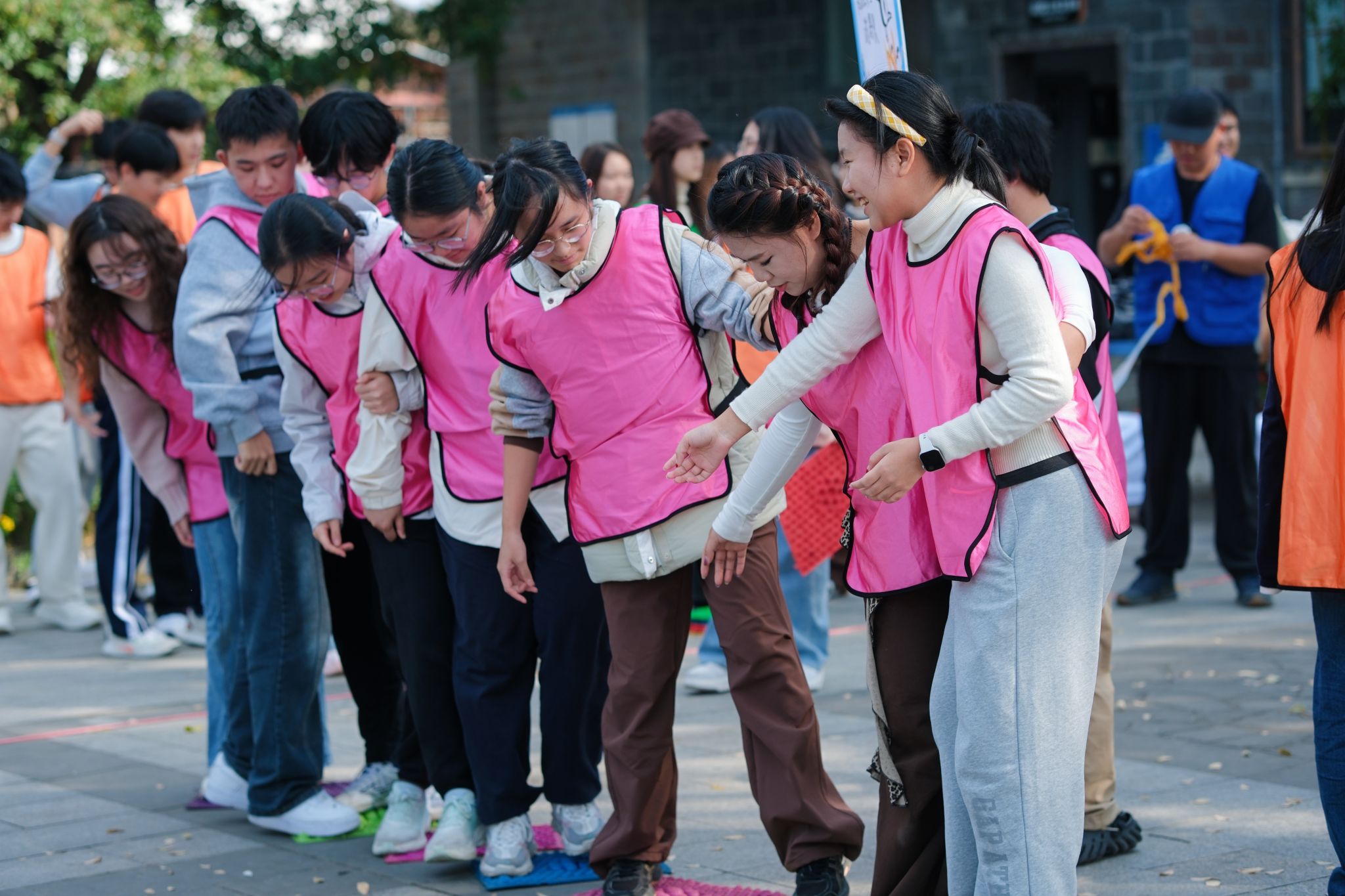 下午,项目学子分组投入到轻松而富有挑战的团队活动中。长管传球、指压板接力等一项项需要密切配合的游戏,激发了各小组的创造力与协作精神。欢笑声与加油声此起彼伏,秋日园区的静谧与青春的热情相映成趣。上午的疲惫一扫而空,取而代之的是家一般的温馨与归属感,团队的凝聚力也在悄然升华。活动不仅锻炼了同学们沟通与解决问题的能力,更拉近了彼此距离,增强了集体感。