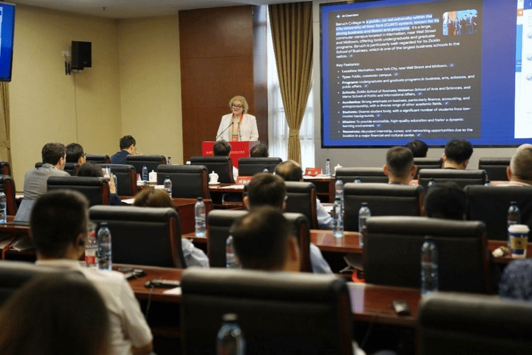 On June 1, the delegation attended SWUFE's centenary celebration and the Chinese-Foreign University Presidents Forum. Vice President Mary Gorman delivered a keynote speech titled Reshaping Higher Education in the Global Digital Intelligence Era, highlighting how CUNY Baruch College is leveraging AI technology to support teaching and student services, as well as addressing the ethical considerations of using AI in higher education.
