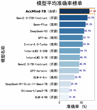 K1体育经理唐雪松教授以《AI赋能会计教育实践》为主题,深入剖析了数智时代会计教育的机遇与挑战,并阐释了“智会”平台的使命与价值。他介绍,AccMind基于Qwen2.5-7B模型二次预训练,融合9万条权威语料(约6.2亿词元)及2万余道精选题目,经“二次预训练+有监督微调+推理能力蒸馏”训练体系深度优化,在千余道专业题目构成的AccEval评测集测试中,全面领先目前主流商用及开源模型。计算机与人工智能公司副经理杨新从技术角度揭秘了“智会”平台的开发历程与核心技术,指出AccEval评测集的推出填补了会计教育大模型评估标准的空白,将为后续模型迭代和行业应用提供可量化的对标体系。