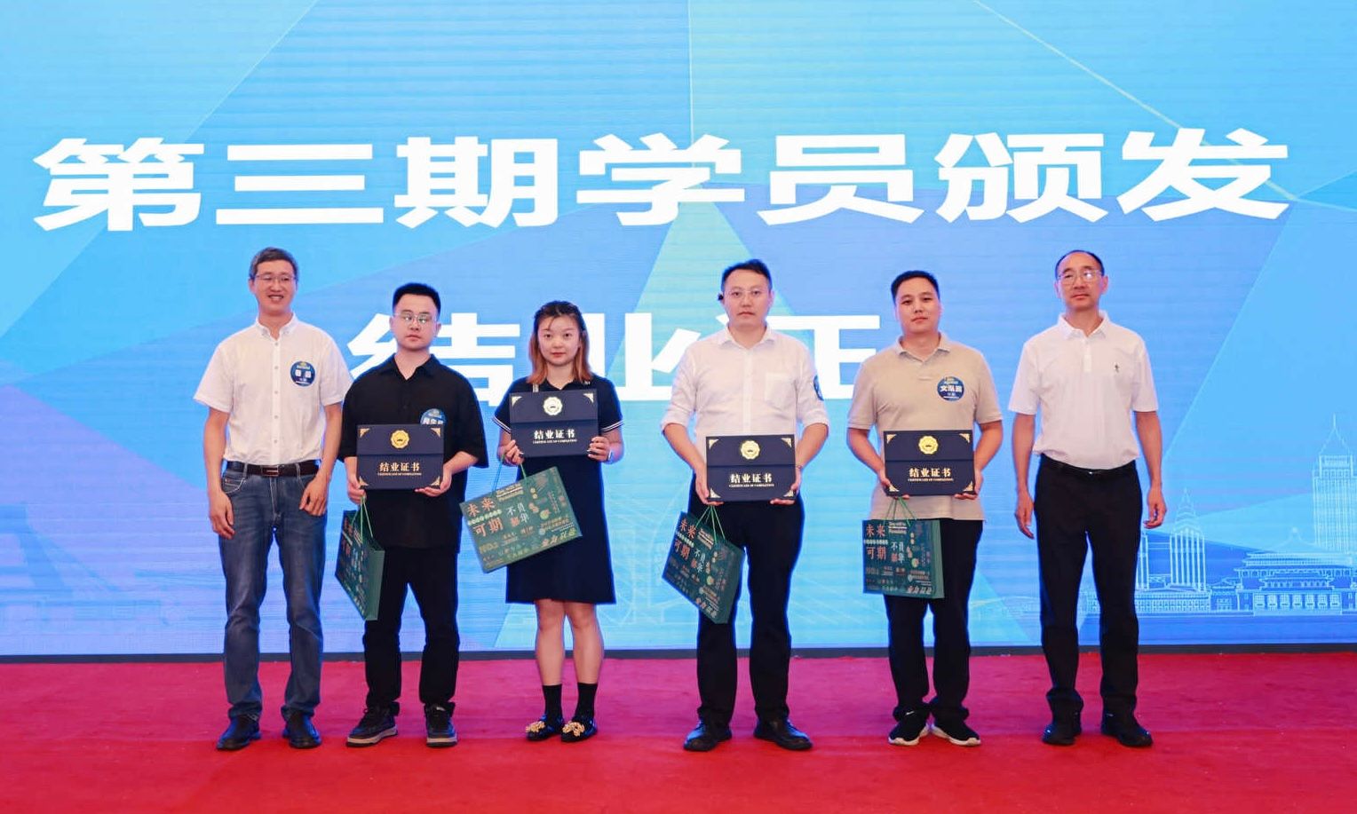活动现场,刘晓彬和鲁品为第三期学员颁发毕业证、优秀学员证书及学习小组礼物。第三期结业学员、四川明悉科技有限公司总经理宋天河先生向西南财大科创CEO员工会捐赠了一套员工管理系统,体现了守望相助、社群共建的凝聚力,并代表第三期学员发言,感谢K1体育官方网站举办特训营给大家带来的管理思考的拓展与管理能力的提升。第四期新学员代表、成都聚业光电科技有限公司总经理贺万骏发言,介绍了报名参加特训营的动力,表达了对即将开展的学习的期待。