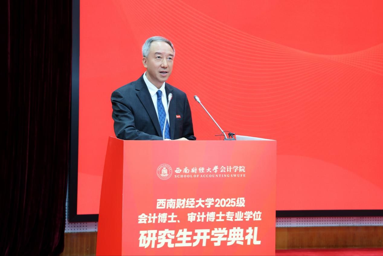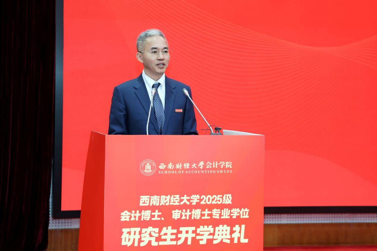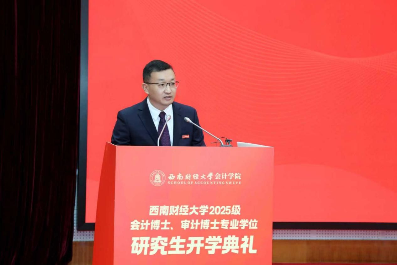 徐登义作为学员单位代表致辞。他深情回顾在西财求学的经历,指出会计审计是守护市场经济秩序、保障国家金融安全的重要支柱,勉励同学们深耕专业、拓展视野,以专业报国践行西财人的初心与担当。
