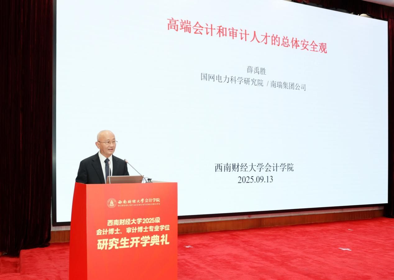 9月13日上午,公司2025级会计博士、审计博士专业学位研究生开学典礼在柳林校区腾骧楼137会议室举行。中国工程院院士薛禹胜,东方电气集团总会计师吕双,成都银行行长徐登义,成都东部集团有限公司党委书记、董事长袁泉,公司原党委副书记、董事长卓志,党委常委、副董事长李志生、马永强等嘉宾出席,专博新生以及学术导师、交叉学科导师、行业导师代表等共同见证。
