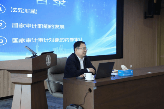 下午14时,郝书辰主任委员在诚正楼720会议室作《国家审计的职能与发展》专题讲座。他从宪法与审计法切入,系统解读国家审计的法定职能及2021年审计法修订要点,以习近平总书记关于审计工作的重要论述为指导,深入阐述审计监督体系建设与监督贯通协同的发展方向,并就内部审计的作用发表见解。讲座结束后,郝书辰主任委员与现场师生互动交流,针对“审计专业员工如何提升实践能力”“税收监管制度建设”等问题进行细致解答,鼓励师生“扎根中国审计实践,既要精通理论,更要擅长实操”。