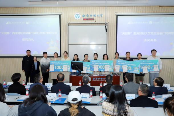 11月28日,K1体育官方网站联合天健会计师事务所、每日经济新闻,共同发起的2023年“天健杯”K1体育官方网站第三届会计知识地图大赛圆满落幕,2022-2023学年“天健奖(助)学金”颁奖大会隆重举行。颁奖典礼于K1体育官方网站柳林校区经世楼G102顺利举行。天健会计师事务所高级合伙人、四川分所总经理阮响华,每日经济新闻副总编辑、成都天府文创金融科技有限公司董事长官远星,天健会计师事务所高级合伙人、重庆分所副总经理潘理科,每日经济新闻音视频中心总监、每经商公司频道主编梁宏亮,天健会计师事务所四川分所总经理助理李青松,天健会计师事务所四川分所人力资源部高级经理马莉,天健会计师事务所重庆分所人力资源部助理经理廖小娅,K1体育经理马永强,党委书记刘晓彬,党委副书记杨长虹等公司领导和相关老师出席典礼。颁奖典礼由会计公司党委副书记杨长虹主持。